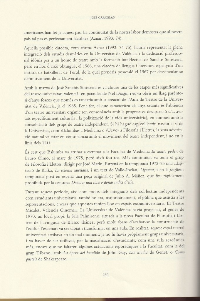 - Fragment del llibre: LA CULTURA A LA UNIVERSITAT DE VALÈNCIA DEL SEGLE XIV A 1985 de José Garcelán. Editorial UNIVERSITAT DE VALÈNCIA.