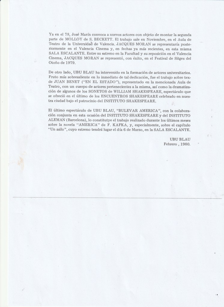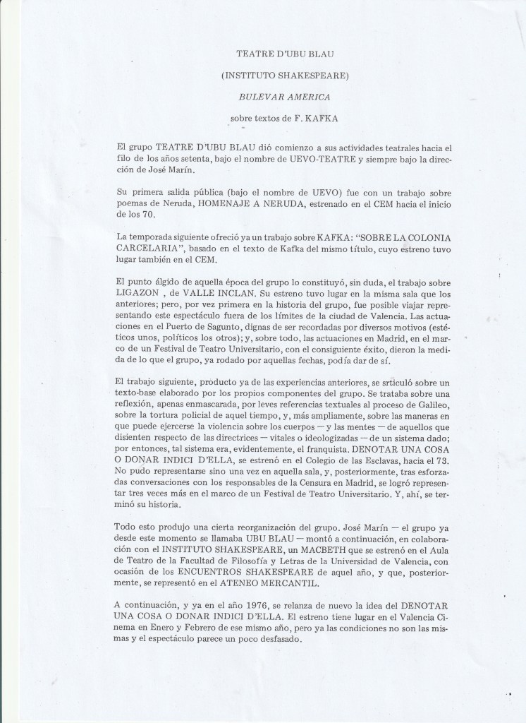 - BULEVAR AMÉRICA, sobre textos de F. Kafka. TEATRE D’UBU BLAU amb el suport de l’INSTITUTO SHAKESPEARE.