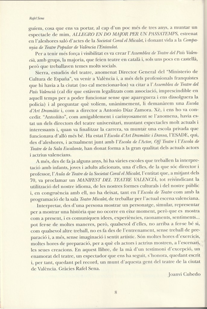 - Pròleg del llibre GRANS INTÈRPREYS VALENCIANS DE L’ESPECTACLE de Rafel Sena. Editorial DENES